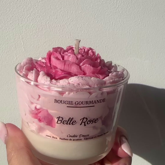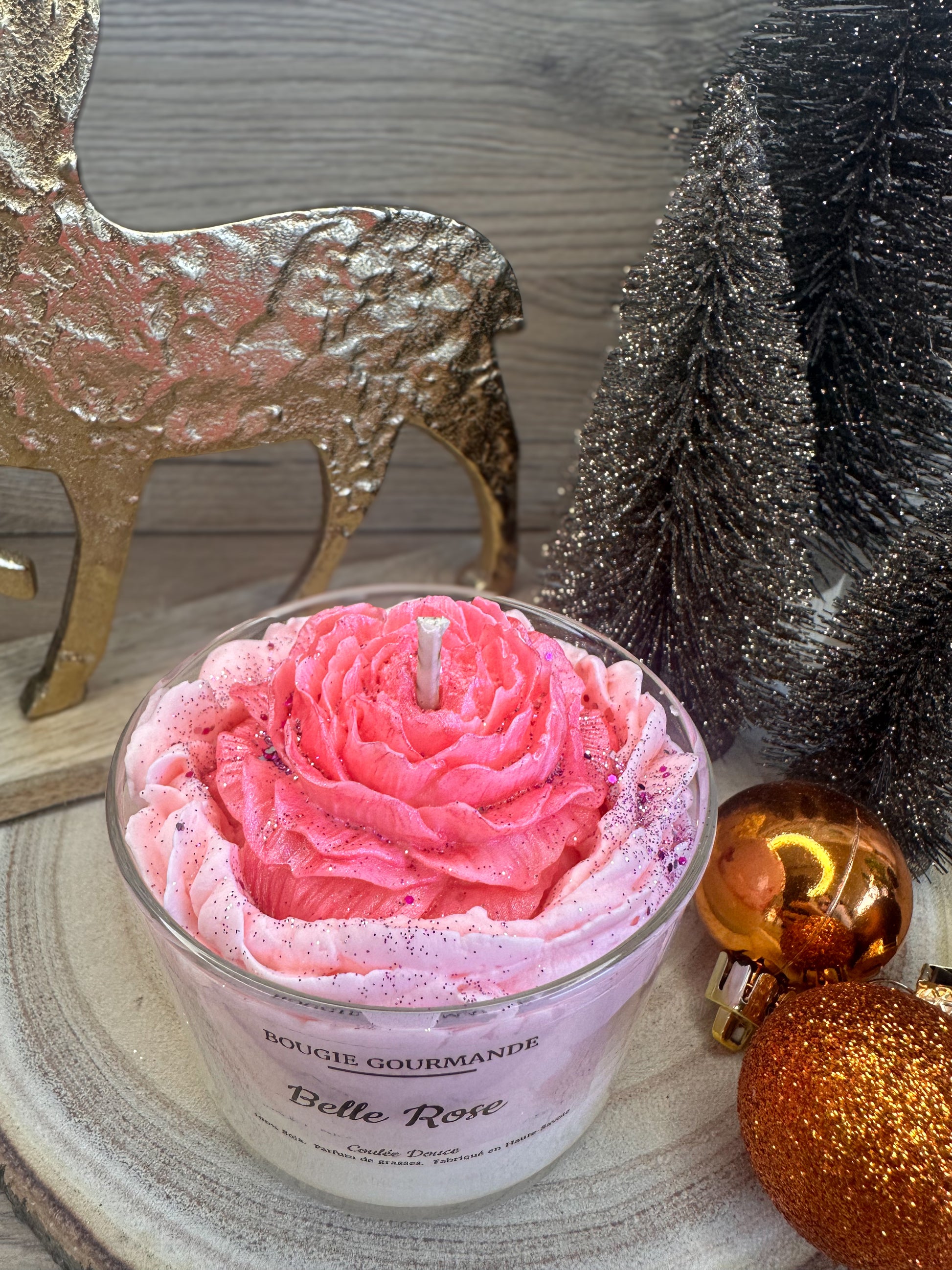 Plongez dans un moment délicat avec Belle Rose, une bougie gourmande entièrement façonnée à la main. Sa chantilly rose pastel, sa grande fleur sculptée et ses éclats pailletés créent une ambiance romantique et raffinée, parfaite pour réchauffer l’hiver.